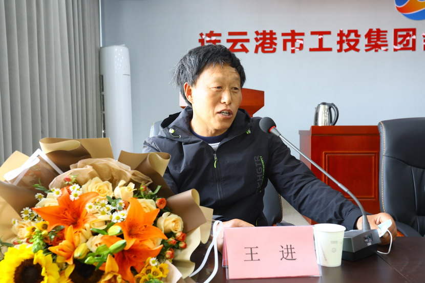會上,公司領(lǐng)導(dǎo)為三位勞模送上鮮花和慰問金。