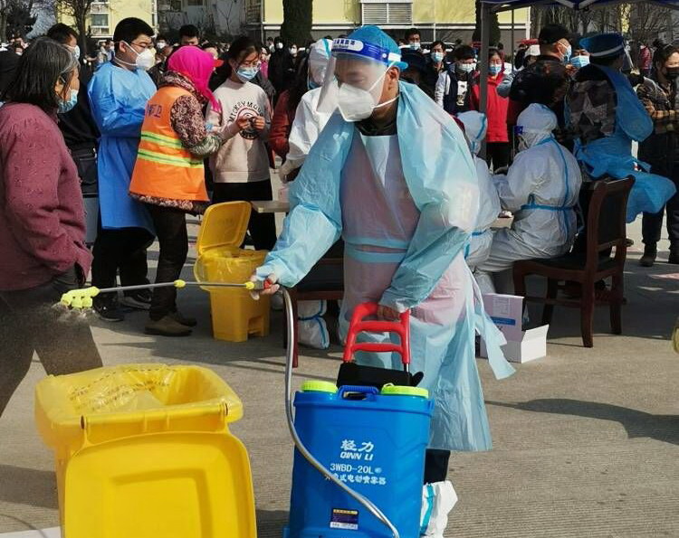 霍正鋼,志愿者隊(duì)伍的一員,也是這支志愿服務(wù)隊(duì)伍中的中堅(jiān)力量。他,心中有大愛,在海州灣黨支部3月7日發(fā)出“馳援社區(qū),共同抗疫”動(dòng)員令后,他第一個(gè)站出來:“疫情就是命令,防控就是責(zé)任。身為黨員,我理應(yīng)模范帶頭,支持新冠肺炎疫情防控工作?!彼粌H是這樣說的,更是這樣做的,在昌圩社區(qū)每一次的核酸檢測(cè)中,他專挑“急、難、險(xiǎn)、重”的活。比如消殺工作,這是一個(gè)體力活,需要背著足足有20公斤重的消毒液,來回不停的走動(dòng),不斷的添加消毒液。有幾次,核酸檢測(cè)從早上8點(diǎn)一直持續(xù)到晚上8點(diǎn),足足12個(gè)小時(shí),而消殺工作的時(shí)長都達(dá)到14個(gè)小時(shí),不僅是檢測(cè)過程中,開始前和結(jié)束后的一小時(shí)都要消殺到位。14個(gè)小時(shí)下來,霍正鋼同志穿著密不透風(fēng)的防護(hù)服,里面的衣服濕了又干,干了又濕······。當(dāng)大家看到他口唇干裂的都掉了皮,問他:“你是沒有喝水嗎?”“不能喝水,忍著吧,喝水就得上側(cè)所,耽誤時(shí)間,這波病毒隱匿性強(qiáng),傳播速度快,不能有一絲懈怠?!彼┖竦恼f著。