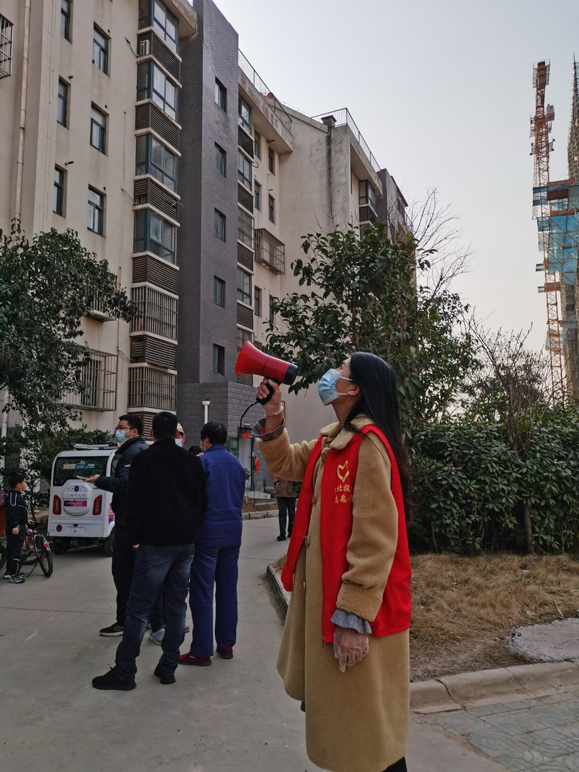 ▲昌圩社區(qū)臨時(shí)黨支部副書記蘇玲宣傳核酸檢測政策