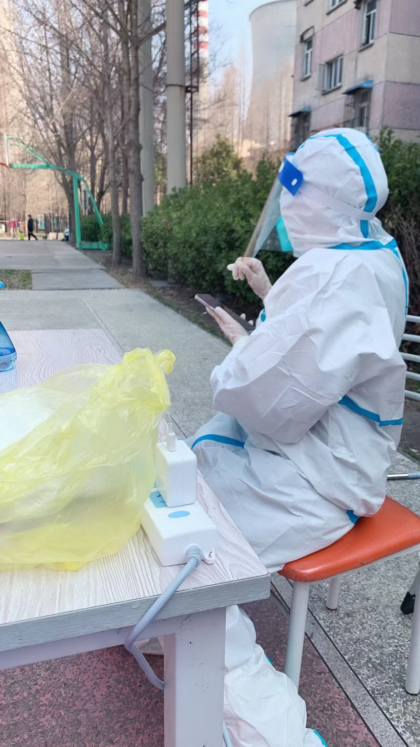 3月8日,臨時(shí)黨支部成立,黨員志愿者們隨即奔赴社區(qū)核酸檢測現(xiàn)場。當(dāng)天,志愿者們穿上防護(hù)服。“你好,請戴好口罩,出示健康碼。”“你好,這邊人比較少,請往這邊走,保持一米距離?!本S持現(xiàn)場秩序、檢查健康碼、登記核酸個(gè)人信息……志愿者們堅(jiān)守在各自責(zé)任區(qū),細(xì)心、耐心回答居民們的各類問題,忙得連喝水的時(shí)間都沒有。細(xì)致周到的服務(wù)、無私的奉獻(xiàn)精神,得到了社區(qū)居民們的一致認(rèn)可和贊揚(yáng)。