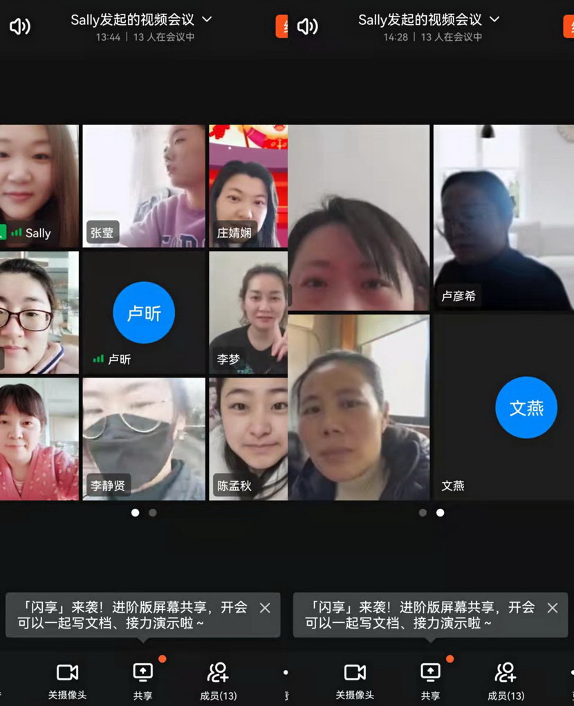 線上貢獻(xiàn)篇。“縱然居家隔離,一樣不防礙我們做貢獻(xiàn),我們線上服務(wù)已經(jīng)開(kāi)啟”三八節(jié)這一天,在社區(qū)忙碌一天的公司女工委副主任宋文靜又特意安排了“三八”節(jié)線上活動(dòng)。這一天活動(dòng)精彩紛呈:首先是視頻連線,通過(guò)廣大女工并向她們家人傳達(dá)市委市政府以及集團(tuán)黨委、投資公司黨委關(guān)于疫情防控文件精神。其次共同學(xué)習(xí)全國(guó)“兩會(huì)”會(huì)議精神。第三,開(kāi)展公司“三新”解放思想大討論線上論壇,圍繞疫情防控、生產(chǎn)經(jīng)營(yíng),尤其是企業(yè)轉(zhuǎn)型發(fā)展出謀劃策。最后還來(lái)了點(diǎn)小游戲-成語(yǔ)“飛花令”,給嚴(yán)肅的疫情防控增添了一息歡樂(lè)的氛圍。