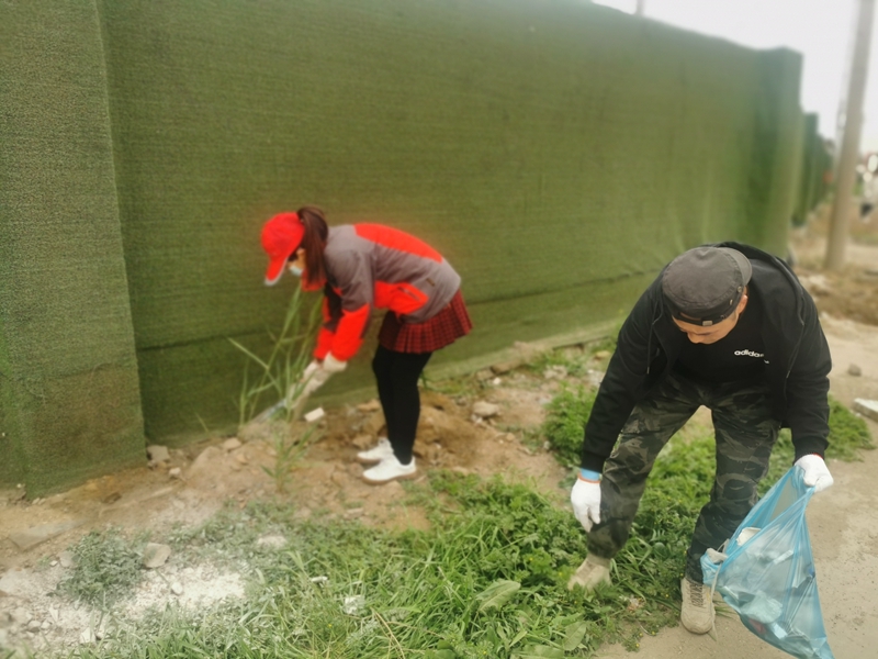 翔立分公司黨支部攜手海州灣公司黨支部對公司的車站小灘進(jìn)行環(huán)境整治,為裸露在外的土地進(jìn)行防塵網(wǎng)鋪設(shè)。