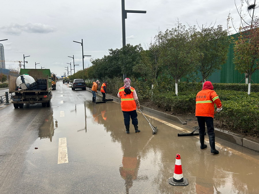 這次任務(wù)不同于以往,不僅有大范圍、高頻次的道路沖洗,更有大面積覆蓋防塵網(wǎng),大片區(qū)清掃落葉,由于時(shí)間緊迫,無法同班組長坐下來布置,王斌、陳大壹便利用吃飯時(shí)間進(jìn)行討論。他們按照“重大活動(dòng)有預(yù)案,重點(diǎn)現(xiàn)場有人跟,重要路段有人?!钡脑瓌t提前考察了出行主要路線和主要觀摩地點(diǎn),對照班組人數(shù)進(jìn)行細(xì)化分工,為了更加精確的將工作計(jì)劃進(jìn)行落實(shí),他們到現(xiàn)場挨個(gè)同每個(gè)班組長進(jìn)行溝通協(xié)調(diào),有問題現(xiàn)場解決、有堵點(diǎn)現(xiàn)場調(diào)配。