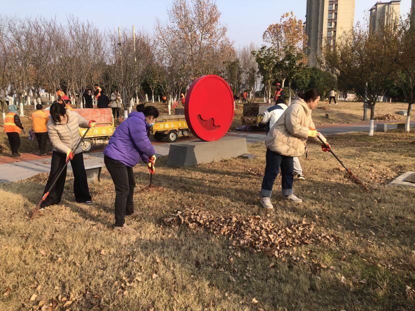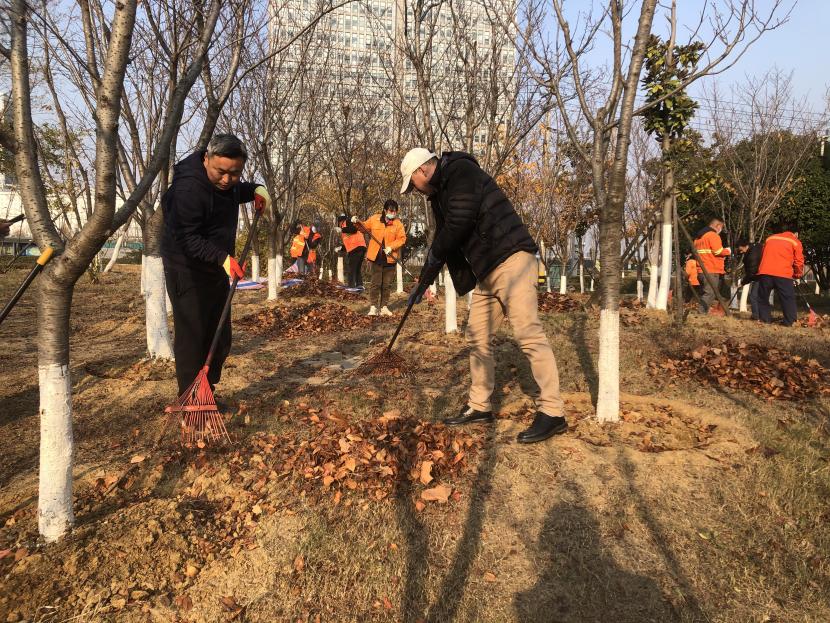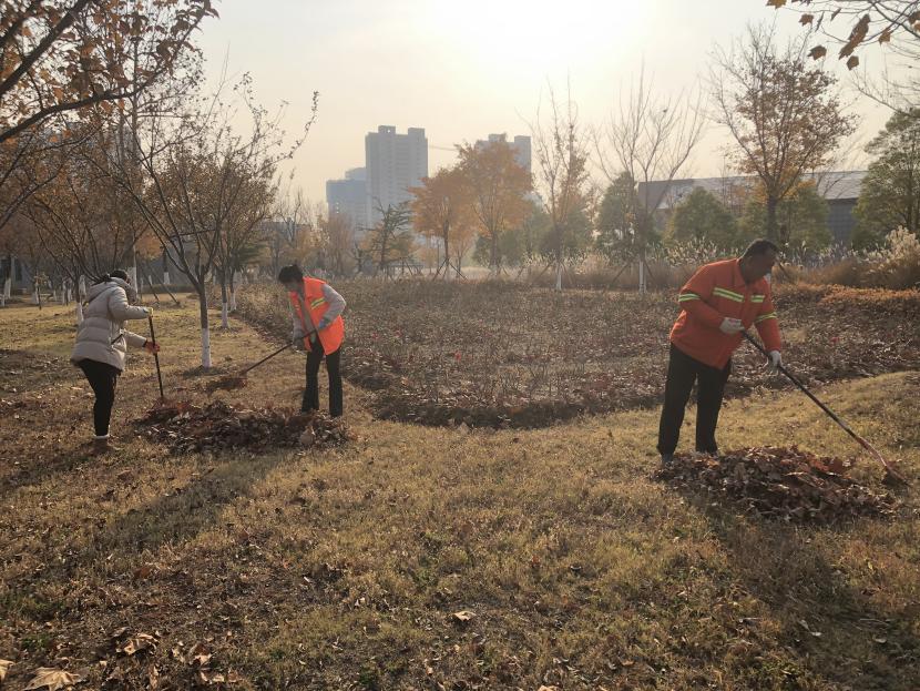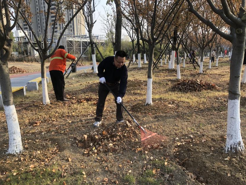 活動(dòng)現(xiàn)場(chǎng),黨員同志、積極分子分為兩撥,分別從創(chuàng)智綠園北門和東門對(duì)園內(nèi)雜草落葉進(jìn)行清除。在戴好手套,做好防護(hù)、防凍措施的同時(shí),紛紛拿著掃帚、耙子等工具,統(tǒng)籌安排、分工勞作,齊心協(xié)力,有的用掃帚掃落葉、有的用袋子裝落葉、有的用耙子摟落葉……大家忙得熱火朝天,充分發(fā)揚(yáng)不怕臟、不怕苦、不怕累的黨員先鋒本色,創(chuàng)智綠園內(nèi)處處是同志們清理雜草落葉的身影,構(gòu)成了一道亮麗的風(fēng)景線,經(jīng)過一個(gè)多小時(shí)的辛勤勞動(dòng),兩撥隊(duì)伍順利“會(huì)師”,沿途雜草落葉被清理得干干凈凈,公園環(huán)境也得到明顯改善。