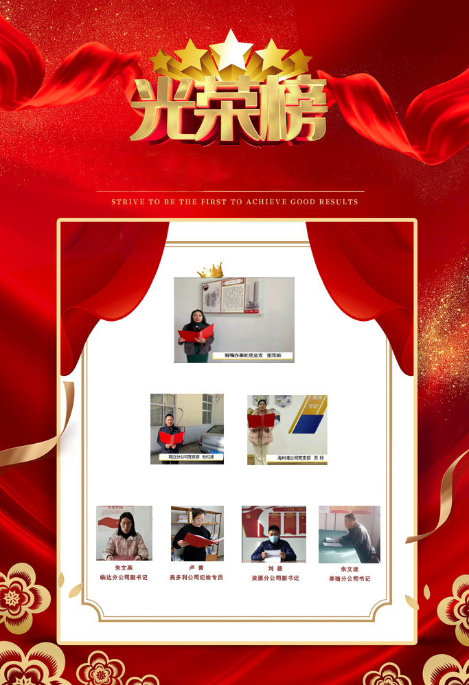 ? ? 為深入學習“黨的二十大”報告精神,公司黨委組織開展黨務工作者讀黨的二十大原文視頻拍攝活動,經(jīng)公司黨委評比,現(xiàn)將得獎人員名單公布如下: