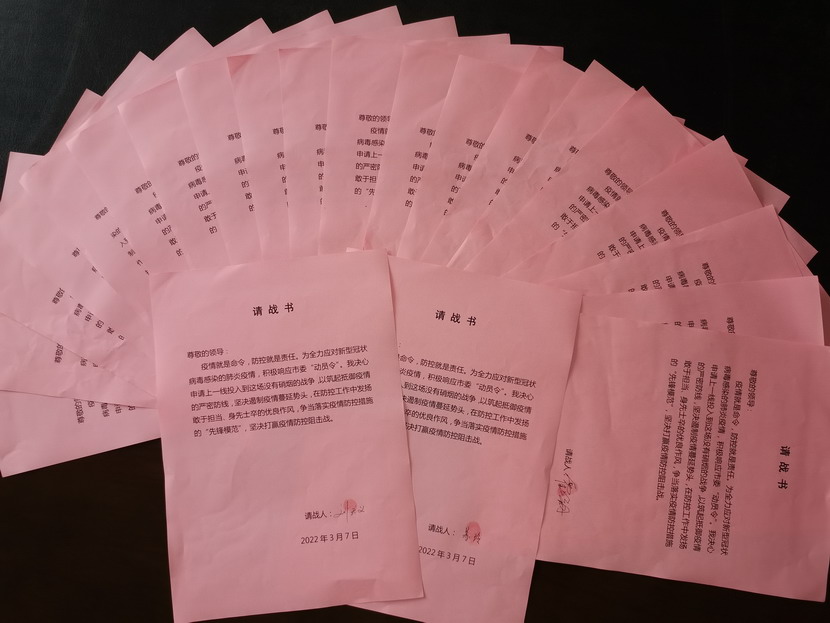 在黨員帶動下,群眾也紛紛行動起來?!斑€有我們,我們雖然不是黨員,但是我們也想為抗疫貢獻(xiàn)自己一份力量......”優(yōu)秀職工沈秀成、邱榮濱、韓永剛、占恒春如此說道。“我決心申請上一線投入到這場沒有硝煙的戰(zhàn)爭,以筑起抵御疫情的嚴(yán)密防線,聽從組織的統(tǒng)一指揮與安排,不計得失,無論生死,絕不退縮......”,42名志愿者在請戰(zhàn)書上簽上自己的名字并按下手印,紛紛表示,隨時準(zhǔn)備著黨中央的召喚,祖國的召喚,一聲令下,立即奔赴抗戰(zhàn)一線。