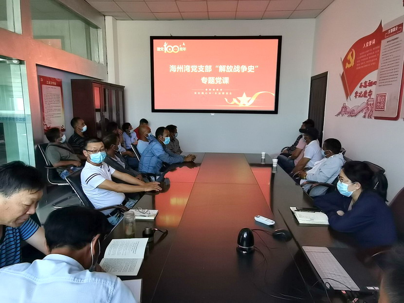為扎實推進(jìn)黨史學(xué)習(xí)教育深入開展,強化學(xué)習(xí)實效,8月25日下午,海州灣黨支部組織全體黨員和入黨積極分子上了一堂生動的黨史學(xué)習(xí)教育專題黨課。
