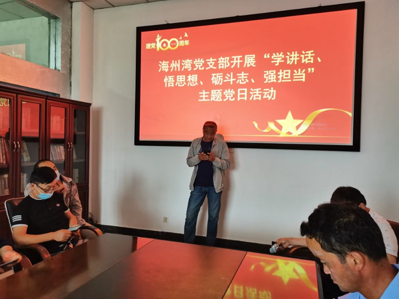 為深入學(xué)習(xí)貫徹習(xí)近平總書記“七一”重要講話精神,進一步堅定理想信念,引導(dǎo)廣大黨員不忘初心、爭創(chuàng)一流,7月27日上午,海州灣黨支部開展“學(xué)講話、悟思想、礪斗志、強擔(dān)當(dāng)”主題黨日活動。