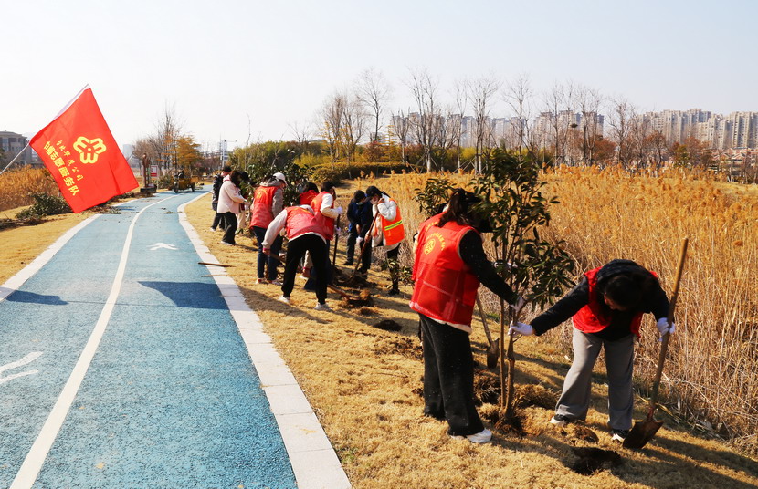 ? ? 都說女人能頂半邊天,不僅在工作上獨(dú)當(dāng)一面,掄起鐵锨來也有“女漢子”的風(fēng)采。在植樹活動(dòng)中,女職工們齊心協(xié)力,有的搬運(yùn)樹苗、有的挖坑育樹、有的培土澆水,大大小小百余棵樹木很快就玉立在昌圩湖公園健康小路兩側(cè),為昌圩湖公園增添了一份綠意。