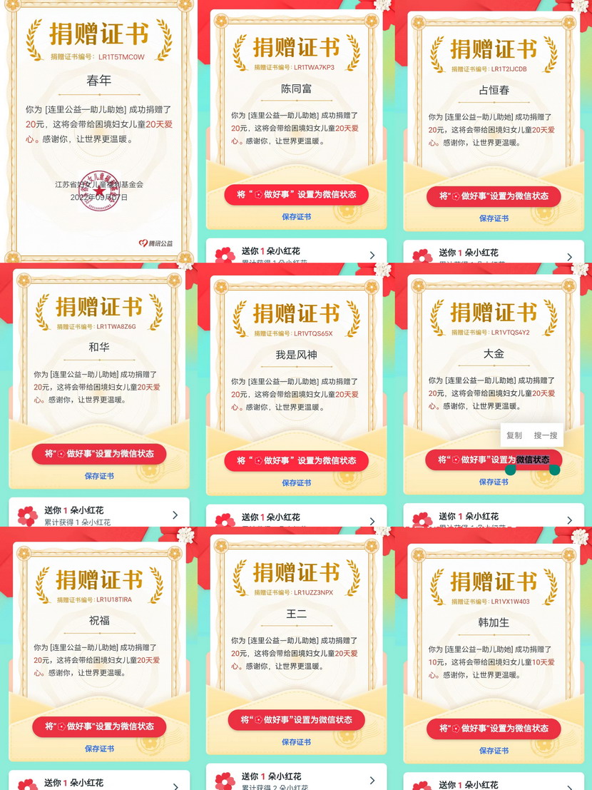 “99公益日”是響應(yīng)國家9月5日中華慈善日號召,由騰訊公司聯(lián)合數(shù)百家具有公開募集資質(zhì)的慈善組織共同發(fā)起的全民公益活動。近年來,在海州灣公司,傳播社會正能量、弘揚社會正氣的良好氛圍日益濃厚,涌現(xiàn)出撿數(shù)千元現(xiàn)金歸還失主的朱文健、幫扶救助中暑暈倒老人的王緒峰、免費理發(fā)多面手霍正鋼等等數(shù)名愛心職工。在“99公益日”募捐活動中,雖然公益平臺最低募捐金額1元即可,但是廣大職工盡力奉獻自己的一份力量,10元20元比比皆是,氣氛十分熱烈。大家紛紛表示,奉獻愛心、扶貧濟困是每個社會公民應(yīng)盡的責任和義務(wù),只要人人都獻出一點“愛”,就能形成“滴水成河、匯流成?!钡陌蹴缌α?/span>!