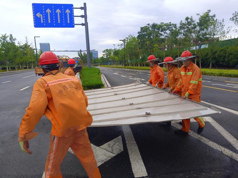 天蒙蒙亮,盛達(dá)市政道路維修班組人員便到崗,對(duì)轄區(qū)內(nèi)道路、排水設(shè)施進(jìn)行全面檢查,及時(shí)將斷枝的樹(shù)木,吹飛的廣告牌,吹翻的企業(yè)圍擋等進(jìn)行清理,及時(shí)疏通被樹(shù)葉、淤泥、垃圾堵塞的雨水井蓋,巡查發(fā)現(xiàn)有破損井蓋的立即上報(bào)并迅速修復(fù),同時(shí)在危險(xiǎn)地段設(shè)置警戒線、錐形桶,全力保障行人和車輛的通行安全。