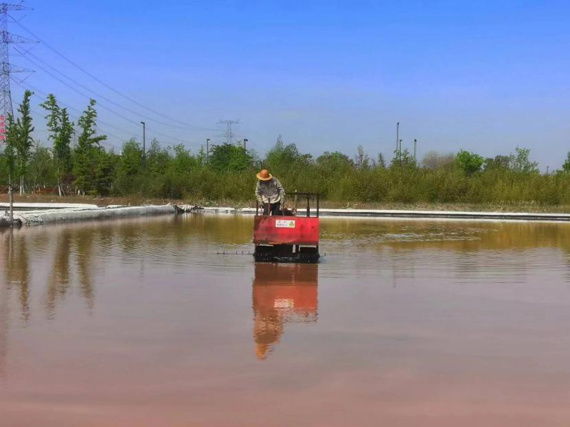 在原鹽生產(chǎn)中有一道重要的工序叫“活碴”,就是把結(jié)晶池中的鹽進(jìn)行翻動(dòng),翻動(dòng)后有利于鹽晶面生長(zhǎng),增加鹵水與鹽晶體的接觸面積,提高原鹽產(chǎn)量。每日清晨6點(diǎn)半,礦鹽班組準(zhǔn)時(shí)有一名工人駕駛活碴機(jī),對(duì)鹽池板進(jìn)行破碎翻動(dòng),保持鹽層的疏松和顆粒間一定的間隙,確保晶體長(zhǎng)得既快又好。