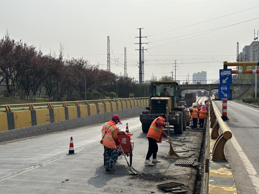 ? ? 在接到突擊任務(wù)后,盛達(dá)分公司與環(huán)衛(wèi)分公司迅速行動(dòng)起來(lái),在經(jīng)過充分的溝通后對(duì)現(xiàn)場(chǎng)統(tǒng)籌安排,兩公司緊密配合,共出動(dòng)鏟車一輛,自卸車一輛,疏通管道車一輛,現(xiàn)場(chǎng)安全員5名,保潔員工40余名,在交警和現(xiàn)場(chǎng)安全員的共同監(jiān)督管理下,保潔員工從新光路涵洞右側(cè)開挖,分工明確,找出淤泥堆積點(diǎn),以最快的速度人工清淤、疏通方溝,現(xiàn)場(chǎng)鏟泥、運(yùn)泥工作有條不紊的進(jìn)行。