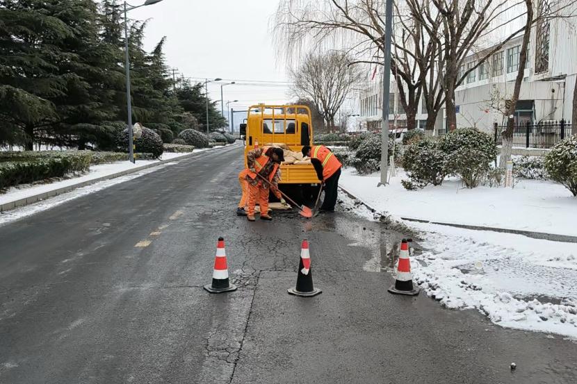 在排患工作中,盛達(dá)市政分公司安排2個(gè)“道路應(yīng)急搶修小組”分頭行動(dòng),按照巡查組發(fā)現(xiàn)的情況,逐點(diǎn)對(duì)雪后道路坑窩等病害迅速展開搶修。考慮冬季氣溫低,不適合傳統(tǒng)熱瀝青修補(bǔ)方式,該公司為盡快解決安全通行問(wèn)題,決定使用修補(bǔ)王、冷瀝青墊平等應(yīng)急措施,先對(duì)道路坑窩、裂痕等進(jìn)行臨時(shí)性維修,該公司在臨時(shí)修補(bǔ)完成后,還對(duì)維修點(diǎn)位建立了養(yǎng)護(hù)維修臺(tái)賬,以便事后巡查及養(yǎng)護(hù),防止點(diǎn)位出現(xiàn)二次病害情況發(fā)生。