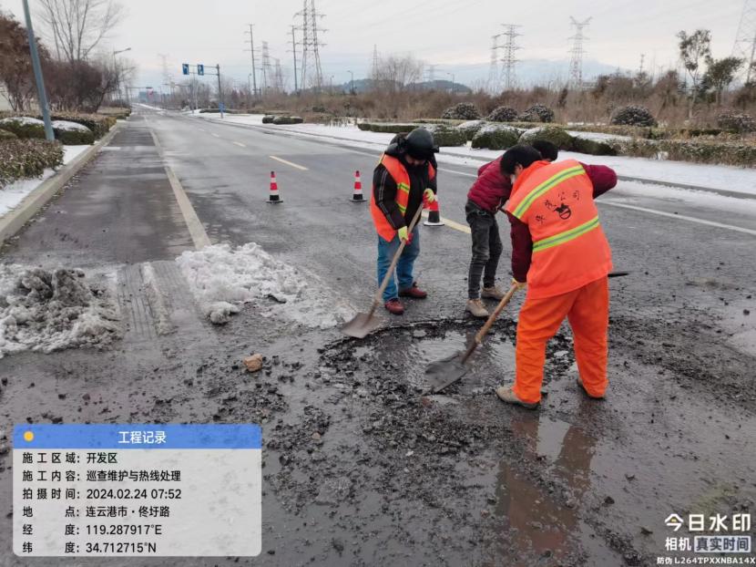 由于連續(xù)的暴雪席卷港城,使轄區(qū)道路路面遭受不同程度的凍害,出現(xiàn)坑塘、裂縫等情況,給群眾出行帶來(lái)安全隱患。盛達(dá)市政分公司于22日開始,晨起早、晚加班,開展雪后道路排患工作,快速處理雪后各項(xiàng)道路病害問(wèn)題,為道路通行安全提供有力保障。