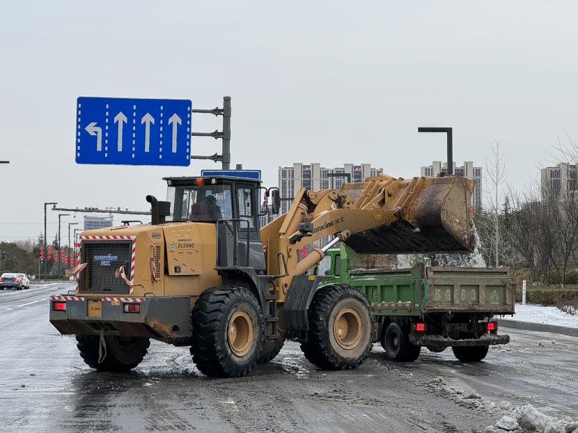 本次掃雪除冰共配備了3輛清掃車、2輛鏟車、1輛撒布機(jī)以及20余噸融雪劑,20余把推雪鏟、鐵鍬等清雪工具,采取“邊下邊除、邊除邊清、邊清邊運(yùn)”的方式,根據(jù)道路積雪厚度和結(jié)冰情況,通過撒布融雪劑、除雪鏟推雪、人工配合等多措并舉,有效清理區(qū)內(nèi)主干道積雪,做到“即下即掃、雪停路清”,保障群眾出行安全。此外,針對(duì)紅綠燈路口、馬路轉(zhuǎn)彎處、陡坡、橋面以及非機(jī)動(dòng)車道等重要節(jié)點(diǎn),環(huán)衛(wèi)分公司又出動(dòng)了100余名工作人員點(diǎn)對(duì)點(diǎn)人工撒布融雪劑,共保障面積300余萬平方米。