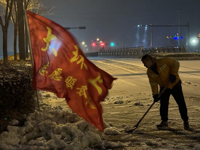 “搖人,快搖人”。環(huán)衛(wèi)分公司迅速響應(yīng)并于凌晨1點(diǎn)01分緊急啟動(dòng)掃雪除冰應(yīng)急預(yù)案,全力以赴迎戰(zhàn)風(fēng)雪。