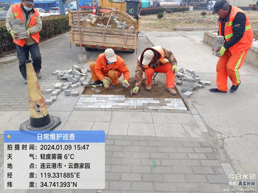 由于去年年底轄區(qū)平山路進(jìn)行電路改造,對道路路面及人行道道磚造成破壞,給行人帶來通行不便和安全隱患,為此,盛達(dá)市政公司為及時恢復(fù)行人安全出行環(huán)境,對平山路開展整治工作。整治工作中,該公司根據(jù)工作實(shí)際情況,科學(xué)安排,精心部署,始終嚴(yán)把質(zhì)量關(guān),和天氣比賽,與時間賽跑,在供電部門完成電路改造后,第一時間進(jìn)行破損路面清除、廢舊道磚拆除、布設(shè)圍擋等清障保通工作,于今年一月初進(jìn)行測量放線、混凝土澆筑、道磚鋪設(shè)等工作,通過養(yǎng)護(hù)人員20余天的有序作業(yè),順利完成整治工作,并做好灑水覆蓋養(yǎng)護(hù)。