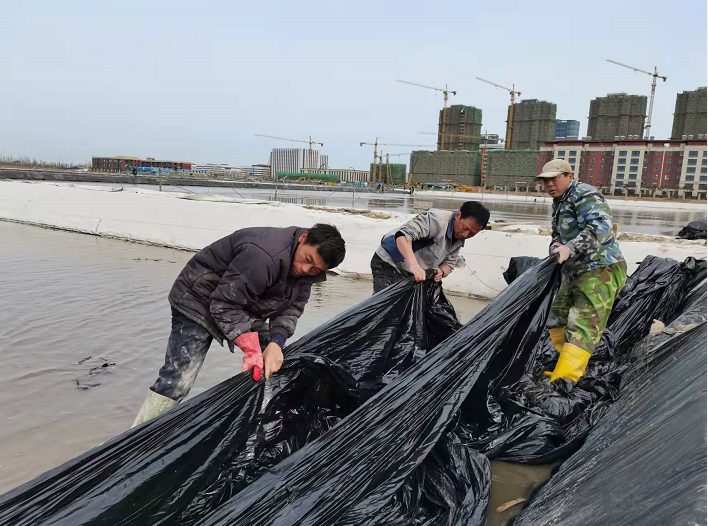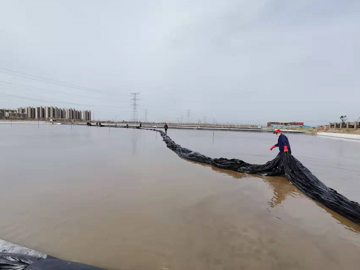 不負(fù)春光早起步,大干快上正當(dāng)時。隨著我市疫情剛一解封,海州灣公司礦鹽復(fù)產(chǎn)工程立即開啟加速“奔跑”模式,經(jīng)過前期充分的準(zhǔn)備和精心部署,在3月31日疫情解封的第一天,安排貨車將第一批塑布運(yùn)輸?shù)轿?。次日早?/span>7點(diǎn),海州灣公司和翔立分公司全體員工在先鋒班組集合,開啟第一輪塑布安裝以及鹵水灌池工作,搶抓“小滿”前后十八天的池內(nèi)長鹽黃金期。