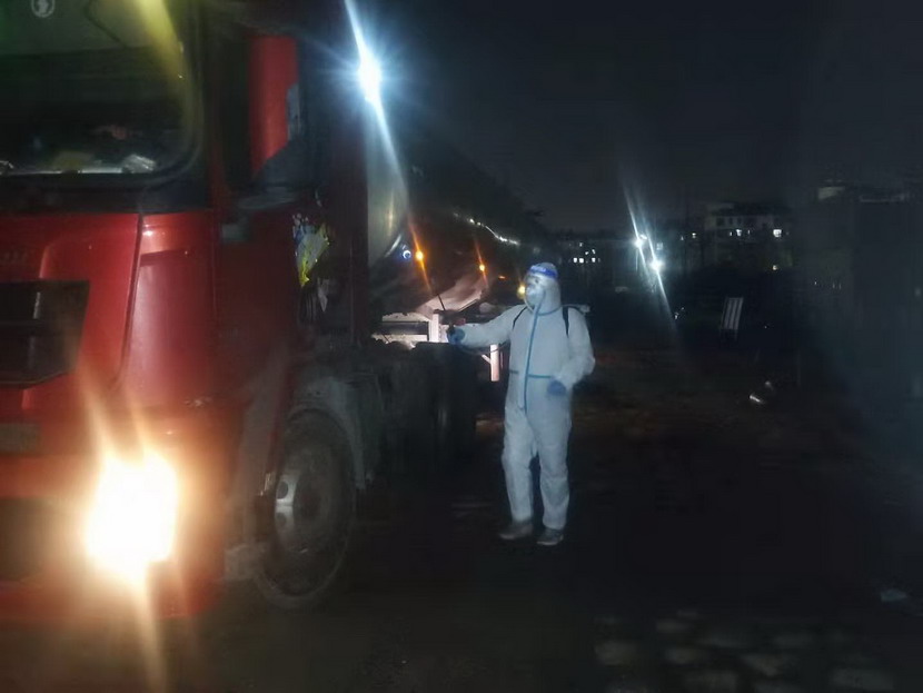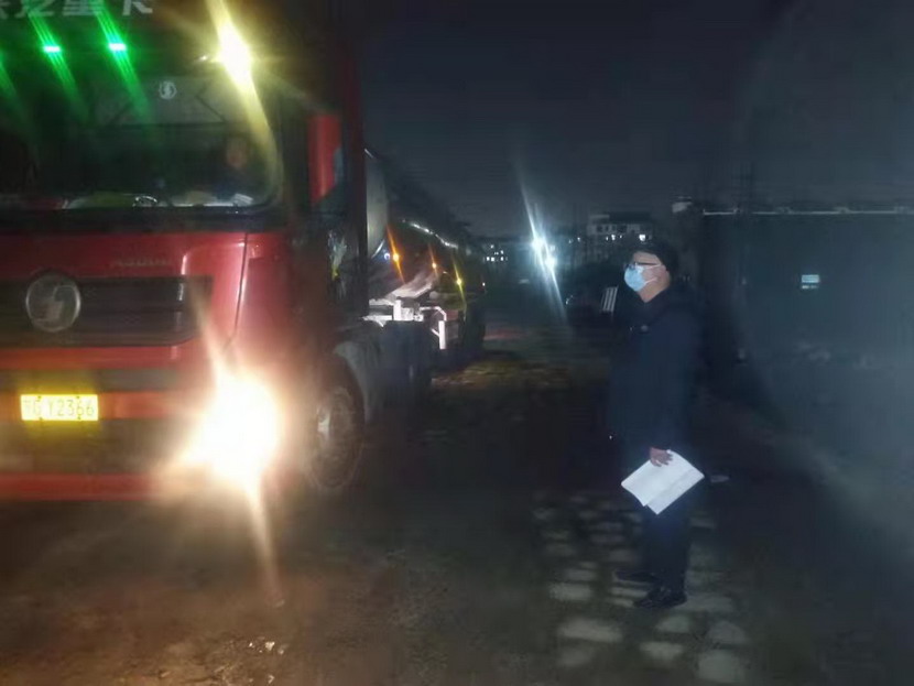 在登記信息的過程中,公司紀(jì)檢專員孫健細(xì)心的發(fā)現(xiàn)駕駛?cè)藛T的不對(duì)勁,“師傅,您看起來很疲憊,是身體不舒服嗎?”“小伙子觀察真是細(xì)致,我只是太餓了,閉環(huán)管理規(guī)定駕駛員不準(zhǔn)離車,所以我從鹽城出來4個(gè)多小時(shí)還沒有吃晚飯。”“師傅,您稍等一下,我去給您買份快餐,再給您燒壺?zé)崴?!”?dāng)駕駛員吃完快餐,鈣液車也裝貨結(jié)束,此時(shí)已是晚上9點(diǎn)40分,按照“方案”規(guī)定,“大白”程輝對(duì)車輛進(jìn)行離場(chǎng)消殺,并拍攝相應(yīng)消殺照片,上傳系統(tǒng)。