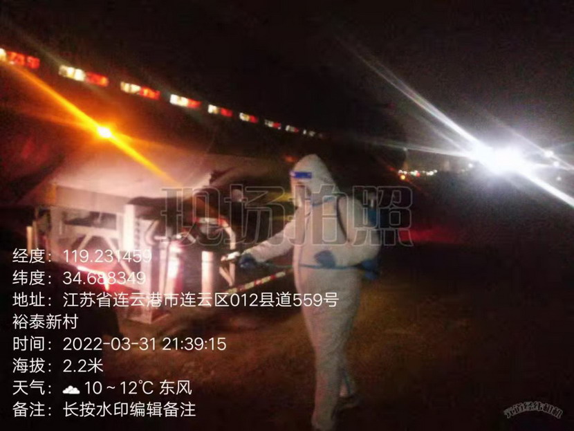 3月31晚8點(diǎn)48分,海州灣公司組織人員對(duì)鹽城來企的鈣液運(yùn)輸車輛進(jìn)行消殺,對(duì)駕駛?cè)藛T查驗(yàn)蘇康碼、行程碼、核酸記錄,登記到廠時(shí)間、車牌、始發(fā)地、所運(yùn)物資等一系列車輛運(yùn)輸信息,并拍攝包含時(shí)間、車牌、封條的全方位照片上傳閉環(huán)管理系統(tǒng)。