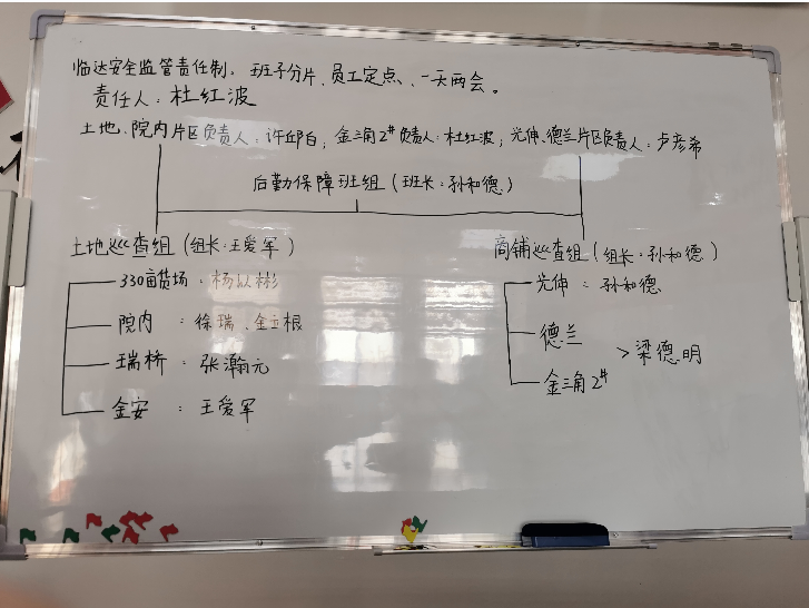 全面壓實安全管理責(zé)任。建立全員安全責(zé)任清單,實施“重大安全風(fēng)險公告”“崗前一分鐘培訓(xùn)”等措施,成立土地、商鋪兩個安全巡檢小組,形成“每日目標(biāo)上墻,每日隱患匯總,每日強(qiáng)化整改”工作體系,切實提升員工的安全素質(zhì)和管控能力。