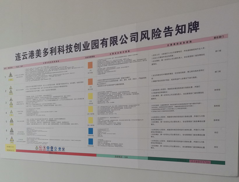 為進(jìn)一步提升美多利公司安全管理水平,切實(shí)推行風(fēng)險(xiǎn)分級管控與隱患排查治理雙重預(yù)防機(jī)制試點(diǎn)工作。近日來,美多利公司組織全體員工開展雙重預(yù)防機(jī)制教育培訓(xùn)。另外,對美多利公司消防泵房、特種設(shè)備等重點(diǎn)區(qū)域進(jìn)行風(fēng)險(xiǎn)分級管控點(diǎn)檢,并對各個區(qū)域張貼崗位風(fēng)險(xiǎn)分級管控告知卡。