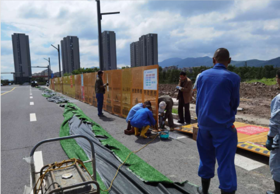 昨日,受大風天氣影響,東晉路上的隔離欄傾倒,該路段恰好處于市創(chuàng)文創(chuàng)衛(wèi)的巡檢路線上。當天晚上接華茂公司通知,翔立分公司鐵軍“臨危受命”,承接圍欄搶修復原固定工程,共有18名員工早上6點冒著蒙蒙細雨在施工現(xiàn)場投入搶修,大理石路牙石背面用膨脹螺絲焊接一一將隔離欄用支撐架固定,該工程限期在兩日內完工。