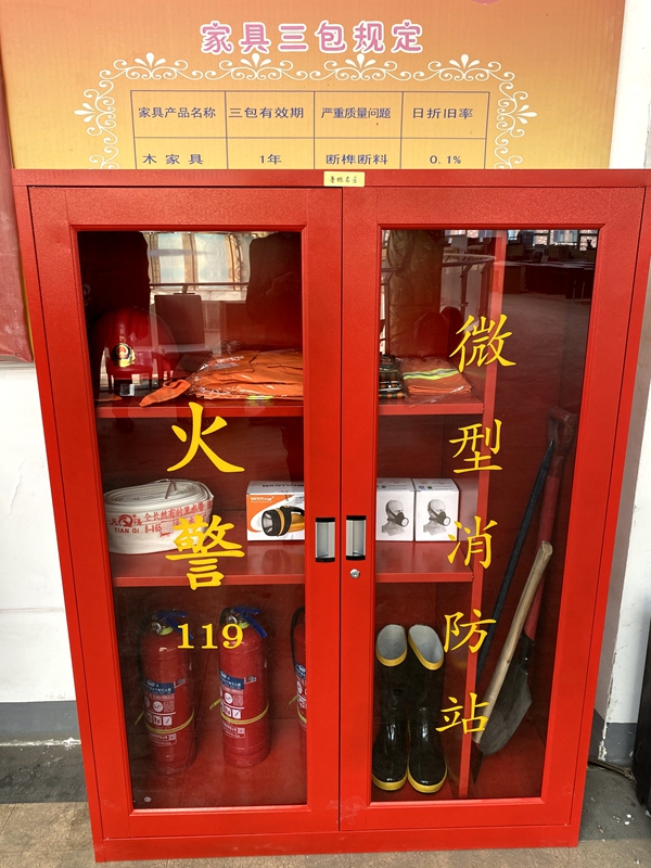 臨達(dá)公司微型消防站面積雖然不大,但可謂麻雀雖小,五臟俱全,滅火器、水槍、水帶、撬棍、消防戰(zhàn)斗服、防護(hù)面具等裝備,整齊擺列在微型消防站內(nèi);同時將依托微型消防站,進(jìn)一步加強(qiáng)消防知識普及宣傳,鍛煉應(yīng)急救援隊伍處置能力,把微型消防站建設(shè)成“有人員、有器材、有戰(zhàn)斗力”的戰(zhàn)斗堡壘,發(fā)揮“小、快、靈”的重要工能作用,為臨達(dá)公司消防安全提供強(qiáng)有力的保障,為臨達(dá)公司商戶牢牢筑起一道安全的“防火墻”。