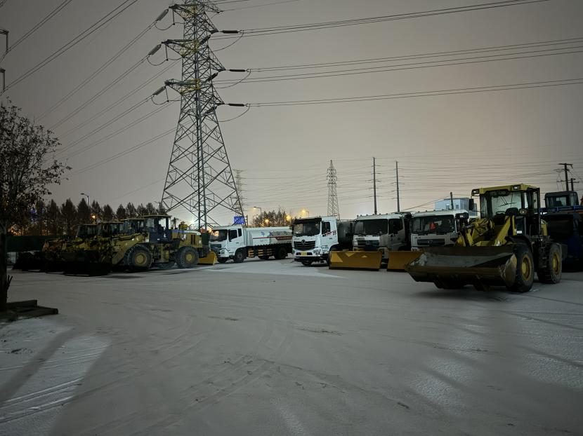 ? ? 方式升級,效果顯著。本次掃雪除冰,結(jié)合了202312月及20242月初的經(jīng)驗,由“先灑后鏟”升級為“先鏟后灑再鏟”的作業(yè)方式,由3雪鏟車進行多輪除雪,確保積雪厚度不超過3厘米,待積雪清除后,換上2撒布機進行融雪劑覆蓋,確保不產(chǎn)生較厚積冰,再由鏟車進行深層除冰,保證路面不上凍。