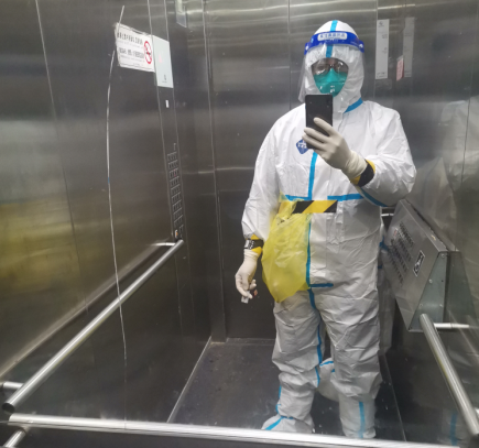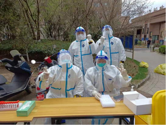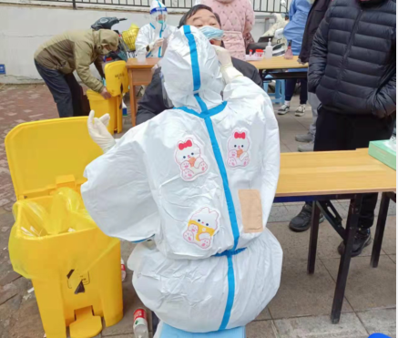 ? ? 12日? 7點(diǎn)集合,領(lǐng)裝備,鑒于昨天的教訓(xùn),早上沒喝水,吃了兩口飯,要不大白服就浪費(fèi)了。出了點(diǎn)意外,排小區(qū)把我們小區(qū)給忘了,沒醫(yī)生來支援,就三個醫(yī)生,三個點(diǎn),三張臺,隊(duì)伍排的那叫一個長?!罢埓蠹野呀】荡a打開,保持一米距離,戴好口罩!”這是我上午說的最多的幾句話。咱們贛榆的醫(yī)生非常辛苦,累了一上午,下午還要采黃碼,掃樓,向他們致敬!中午剛領(lǐng)盒飯就通知徐州支援的醫(yī)生到了,來了十幾個,扒拉兩口飯,開始穿裝備。第七輪結(jié)束,感覺人都廢了,渾身濕透,嗓子疼,不想動!