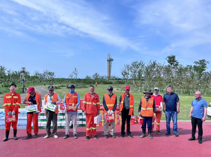 在現(xiàn)場(chǎng),為他們送去礦泉水、八寶粥、冰紅茶、牛奶等防暑降溫物品和生活用品。莊董事長(zhǎng)與員工們親切交談,關(guān)心詢問(wèn)員工作和生活情況,并叮囑要合理調(diào)整工作時(shí)間,妥善做好員工高溫防暑降溫工作。接到領(lǐng)導(dǎo)遞到手上的慰問(wèn)品,聽(tīng)著領(lǐng)導(dǎo)的問(wèn)候和囑咐,員工們心懷感激,競(jìng)相表示要克服酷暑高溫,堅(jiān)守崗位,盡職盡責(zé),以飽滿的工作熱情為企業(yè)發(fā)展貢獻(xiàn)力量。(孫祥艷)