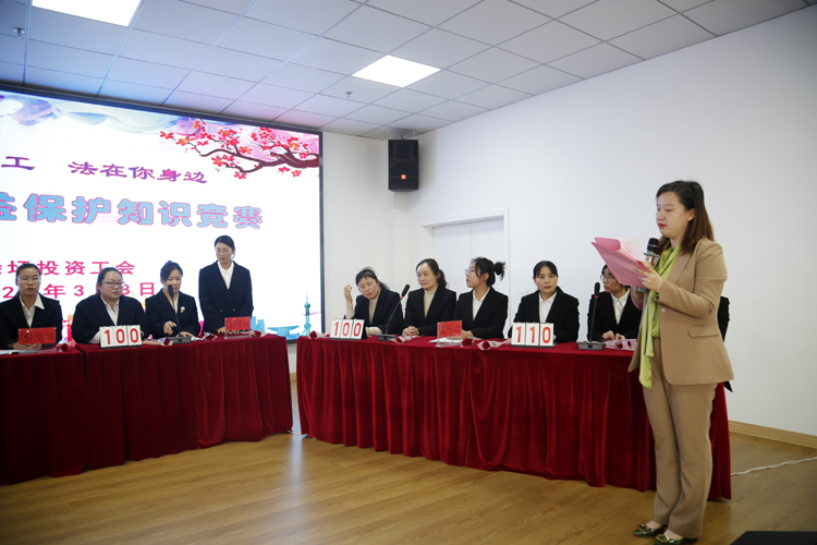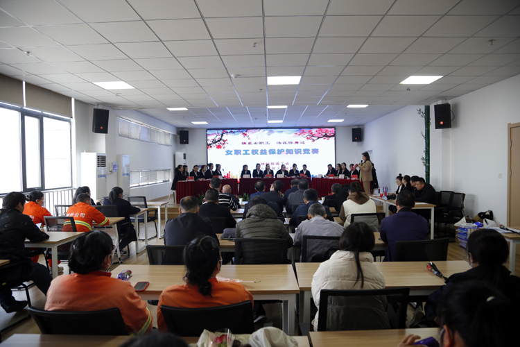 3月8日,投資公司工會(huì)在環(huán)衛(wèi)運(yùn)營管理中以“情系女職工 法在你身邊”為主題,舉辦 “女職工權(quán)益保護(hù)”知識(shí)競(jìng)賽。投資公司黨委書記、董事長、總經(jīng)理莊清付,黨委副書記、工會(huì)主席劉剛,副總經(jīng)理?xiàng)钍孛?,各單位黨政工、工會(huì)女工委成員、悅升機(jī)關(guān)全體員工觀摩比賽。