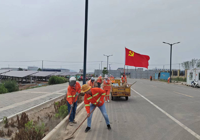 621日,該黨支部近30余名黨員在支部的感召下,匯集于新區(qū)節(jié)能一路道路兩邊。勞動(dòng)現(xiàn)場,黨員生產(chǎn)骨干姚功身先士卒,無懼泥土粉塵揚(yáng)起,揮汗清理,不怕臟、不怕累,不放過任何衛(wèi)生死角。勞模張學(xué)軍與老黨員徐習(xí)東相互配合,打包,裝車, 及時(shí)轉(zhuǎn)運(yùn)各類垃圾達(dá)50多袋,清掃路面積土近1500米長,大家分工明確,重活臟活搶著干。隊(duì)員們齊心協(xié)力,用實(shí)際行動(dòng)詮釋黨員吃苦在前、勇于擔(dān)當(dāng)?shù)姆瞰I(xiàn)精神。經(jīng)過四個(gè)多小時(shí)清理,主干道及周邊道路垃圾、雜草、泥土全部清理干凈,高質(zhì)量完成奉獻(xiàn)勞動(dòng),鮮艷的黨旗在陽光的照耀下顯得格外閃亮。(楊波)