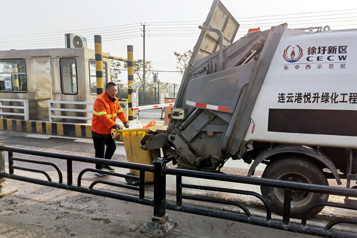 徐圩新區(qū)地域面積較大,廠區(qū)單位分布分散,形成集中清運(yùn)點(diǎn)之間的跨度大、距離遠(yuǎn),從最東端的虹洋港口到最西端242省道邊的人文園,兩點(diǎn)相距就有15公里之多,面廣量大。為及時(shí)高效完成垃圾清運(yùn)工作,羅海軍每天凌晨4點(diǎn)他對作業(yè)車輛進(jìn)行仔細(xì)檢查,隨后召開班前會議,他倡議全班工作人員:“吃在車上,干在路上?!睜幏謯Z秒,確保工作完成更到位、更扎實(shí)。