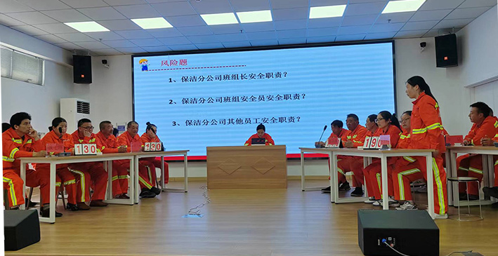 為提升職工安全知識(shí)素養(yǎng),強(qiáng)化職工防災(zāi)減災(zāi)安全意識(shí),助力公司安全管理各項(xiàng)工作再上新臺(tái)階。5月14日下午,保潔分公司在悅升401會(huì)議室開(kāi)展防災(zāi)減災(zāi)”安全知識(shí)競(jìng)賽活動(dòng)。來(lái)自保潔分公司近50余名職工參加。