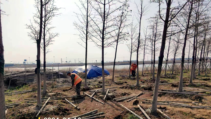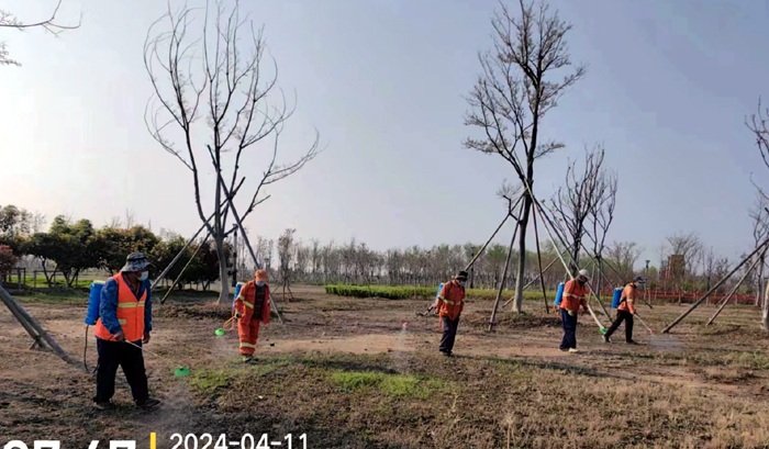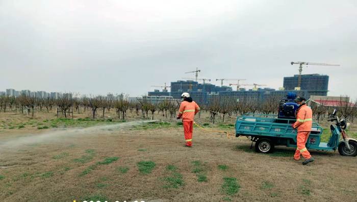 積極澆灌返青水。當(dāng)前,地溫回升快,苗木易萌芽,該班組采用“人工+機(jī)械”相結(jié)合的方式,全面啟動(dòng)返青水集中澆灌工作,重點(diǎn)對(duì)園區(qū)喬木、果木、草坪等進(jìn)行全面灌溉,促進(jìn)苗木、草坪返青發(fā)芽。按照分種類、合理澆灌的原則,采取集中澆灌的方式最大限度減緩晝夜溫差對(duì)綠化植物的影響,入春后共澆水100余次,對(duì)落羽杉圓動(dòng)力灌根2000棵,對(duì)大樹(shù)澆水1500棵,綠化澆水約30000平方米。