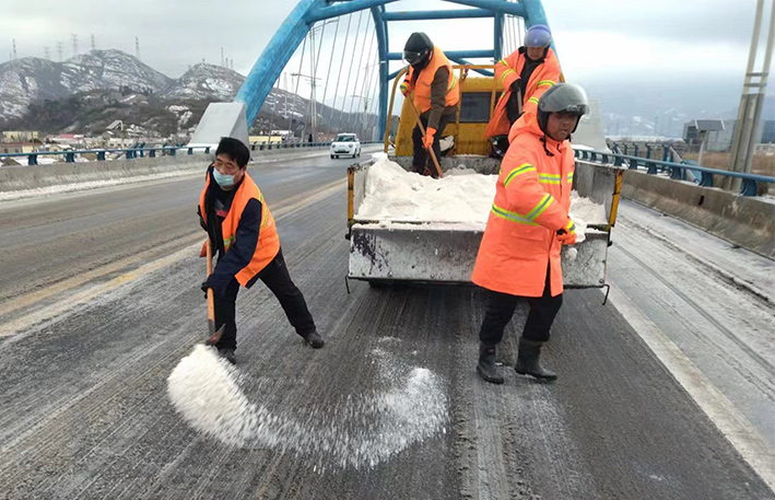 晚上7時,綠化,保潔班組聞雪而動,搶抓作業(yè)時間,連夜對管轄區(qū)內(nèi)燒香河大橋、云港路、瑞和路橋梁坡道、結(jié)冰路段進(jìn)行撒鹽融雪融冰作業(yè),他們頂著寒風(fēng)、冒著風(fēng)雪,不停揮動手中的鐵锨,任憑風(fēng)雪打在臉上,始終堅守在除雪第一線,他們是雪天最美的風(fēng)景線,更是這個城市最樸實最可愛的守護(hù)者