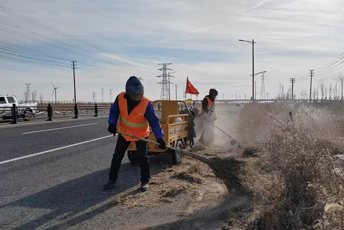 連日來,為保障園區(qū)道路周邊優(yōu)美整潔環(huán)境。保潔分公司因勢而動,強化路邊枯草、人行輔道、管廊垃圾治理,處處彰顯徐圩悅升人敬業(yè)畫面,辛勤勞動場景構(gòu)成寒冬里最美靚麗風景線。