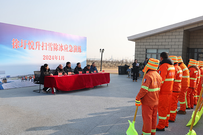 冬季是冰凍、降雪等自然災害高發(fā)季節(jié),為切實做好冰雪災害性天氣的應對及突擊保障工作,搶險救災減少損失,1月4日下午,悅升公司聯(lián)合徐圩城建公司及社事局、徐圩環(huán)衛(wèi)所在上海路進行掃雪除冰應急演練。徐圩城建公司副總經(jīng)理肖堅,徐圩環(huán)衛(wèi)所所長郁紅衛(wèi),徐圩新區(qū)社會事業(yè)局環(huán)衛(wèi)科科長趙國慧、悅升公司董事長馮如師、總經(jīng)理徐習華及各公司相關(guān)負責人參與本次演練。