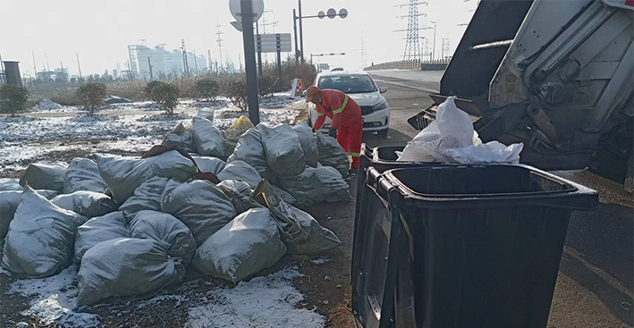 早上六點(diǎn),在徐圩新區(qū)垃圾轉(zhuǎn)運(yùn)站,環(huán)衛(wèi)分公司垃圾清運(yùn)班組班長(zhǎng)羅海軍正在等著垃圾收運(yùn)中轉(zhuǎn)車的到來(lái)。他說(shuō):“知道昨晚下雪了,今天我們提前一小時(shí)就上崗了,以防因?yàn)榈缆窛窕绊懯者\(yùn)效率?!?據(jù)統(tǒng)計(jì),在持續(xù)低溫時(shí)段,他們每天清運(yùn)生活垃圾高達(dá)15噸,清理轉(zhuǎn)運(yùn)各類果皮箱垃圾達(dá)200余個(gè)及19家企業(yè)(單位)的垃圾桶,并同步負(fù)責(zé)裝運(yùn)由道路保潔工人撿拾定點(diǎn)擺放在路邊的近500包袋裝垃圾。(何春林)