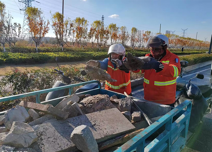 及時(shí)配合徐圩城建處理陬山路、石化七消防通道等路段施工產(chǎn)生動(dòng)態(tài)各種垃圾20多車,再次轉(zhuǎn)運(yùn)陬山路主道兩側(cè)綠化帶中石塊2000多斤。針對(duì)園區(qū)建設(shè)發(fā)展情況,序時(shí)推進(jìn)石化五道,四道樣板路工程打造,組織人員突擊清理輔道雜草近1000余米長(zhǎng),撿拾管廊下各種垃圾300余袋。勞動(dòng)現(xiàn)場(chǎng),黨員生產(chǎn)骨干薛明柱、朱海勇等同志先鋒示范閃亮道路最前沿,用實(shí)際行動(dòng)保障園區(qū)美麗環(huán)境。