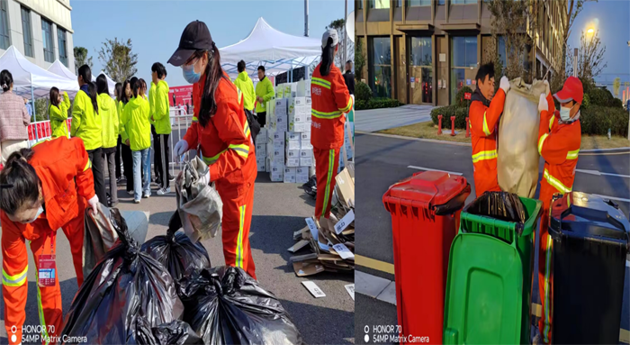 10月22日凌晨3時(shí),保潔公司40余名保潔先鋒兵鋒六路安全序時(shí)趕赴賽事保障區(qū)域。道路現(xiàn)場,保潔衛(wèi)士無懼深秋徐圩海風(fēng)吹透身體,兩人一組,揮動手中掃把,徒手清掃各個(gè)活動區(qū)域積土1000多米長,撿拾海風(fēng)吹落各種垃圾100余包。比賽現(xiàn)場,保潔人員無視秋日暖陽照曬,及時(shí)有效清理運(yùn)動員丟棄飲料瓶300余包,清理打包各種餐盒2000多個(gè),轉(zhuǎn)運(yùn)各種垃圾200多車。大家齊心合力的工作精神與賽事活動融入一體。