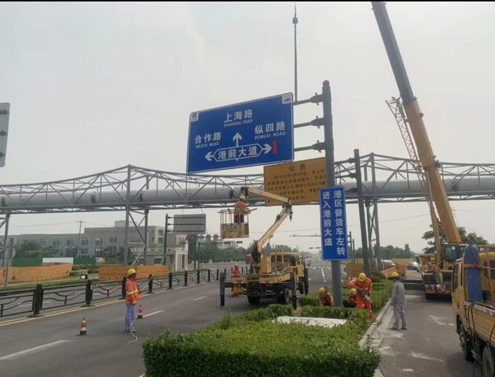 從5月起,市政分公司已著手15座標(biāo)志牌基座澆筑工作,7月初,完成了基礎(chǔ)養(yǎng)護(hù)期,達(dá)到安裝條件。因前階段準(zhǔn)備工作到位,為此次標(biāo)志牌安裝作業(yè)順利完成奠定了堅實的基礎(chǔ)。本次施工的道路包括港前大道、蘇海路、徐新路等8條道路,共拆除、安裝大型標(biāo)志牌15套,工程收入約十萬元。