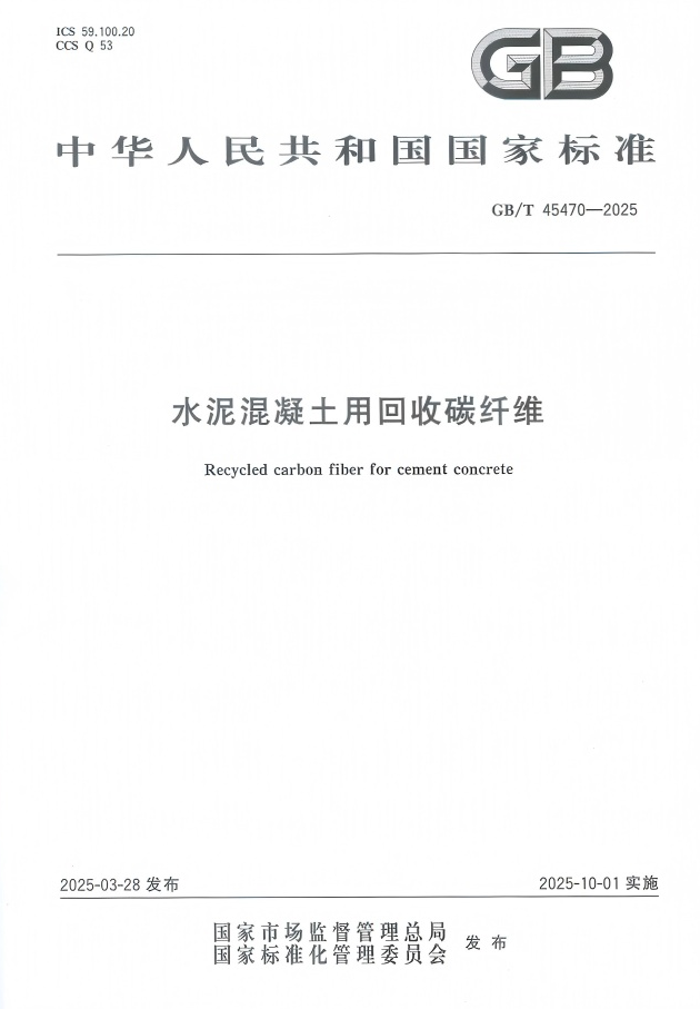 近日,纖維新材料研究院參編的國(guó)家標(biāo)準(zhǔn)《水泥混凝土用回收碳纖維》(GB/T45470-2025)經(jīng)國(guó)家市場(chǎng)監(jiān)督管理總局、國(guó)家標(biāo)準(zhǔn)化管理委員會(huì)批準(zhǔn)正式發(fā)布,并將于2025年10月1日起正式實(shí)施。該標(biāo)準(zhǔn)融合了碳纖維生產(chǎn)、混凝土工程及檢測(cè)領(lǐng)域的前沿技術(shù),為建筑、交通、市政等行業(yè)提供高性能材料應(yīng)用依據(jù)。標(biāo)準(zhǔn)首次明確了回收碳纖維在水泥混凝土應(yīng)用中的分類(lèi)、性能指標(biāo)及檢測(cè)方法,標(biāo)準(zhǔn)的發(fā)布將推動(dòng)混凝土向輕量化、高耐久性方向升級(jí),減少傳統(tǒng)建材資源消耗,是我國(guó)碳纖維循環(huán)利用領(lǐng)域的重要突破,標(biāo)志著我國(guó)在綠色建材標(biāo)準(zhǔn)化體系建設(shè)中邁出關(guān)鍵一步。標(biāo)準(zhǔn)的批準(zhǔn)發(fā)布,是研究院深耕高性能纖維復(fù)合材料領(lǐng)域的又一里程碑,作為國(guó)有科技型企業(yè),公司將加大力度推動(dòng)新材料領(lǐng)域科技成果轉(zhuǎn)化,推動(dòng)綠色建材技術(shù)創(chuàng)新,為我國(guó)新材料產(chǎn)業(yè)高質(zhì)量發(fā)展注入新動(dòng)能。